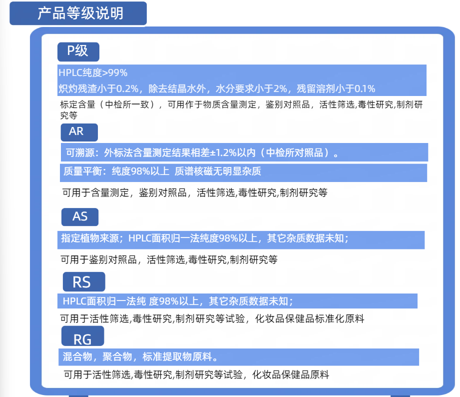Herbest品牌产品提供不同等级, 以下为三个级别产品的说明,您可根据您的项目&研究需求选择合适的级别。